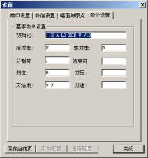 6)命令设置:它是指刻字机的指令参数,如图所示。此对话框中的所有参数设置需要根据刻字机的技术参数来设置。